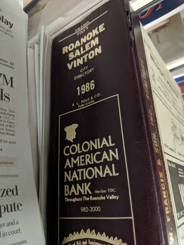 I found the Roanoke, Salem, and Vinton City Directory for that year and went to the business section.